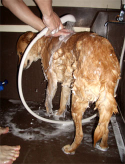 なんとか大人しくシャンプーさせてくれるニックさん。
