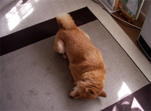 ストレス満タンのようで、ラグマットに顔を