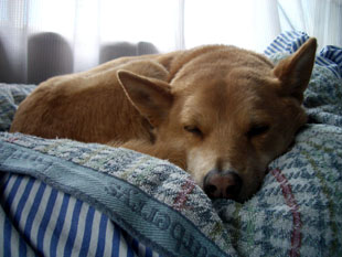 人間のお昼ごはんのパスタにもつられずに、ずっと寝てます。