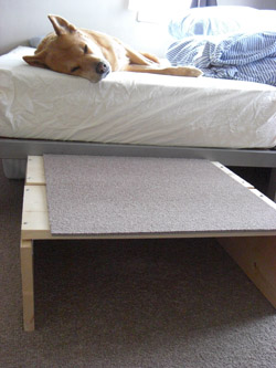ニックには関節痛があるので、ベッドの昇降に踏み台を使っています。